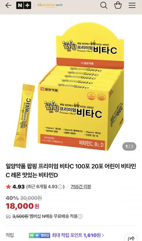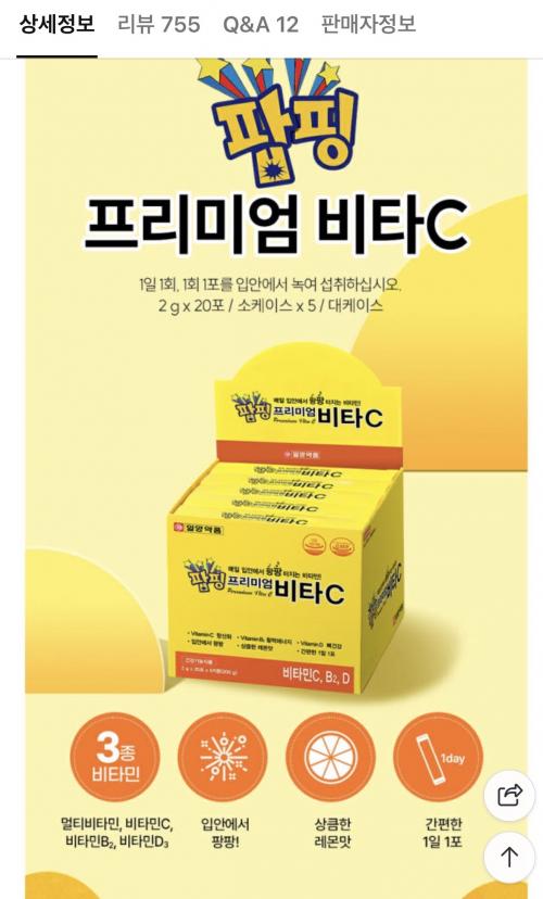 [네이버]일양 팝핑 맛있는 프리미엄 비타C 20포 (3,480원/네멤무배) > 국내핫딜