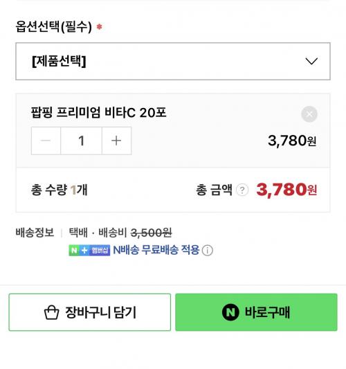 네멤 무료배송에 20포 3,480원 저렴하네요