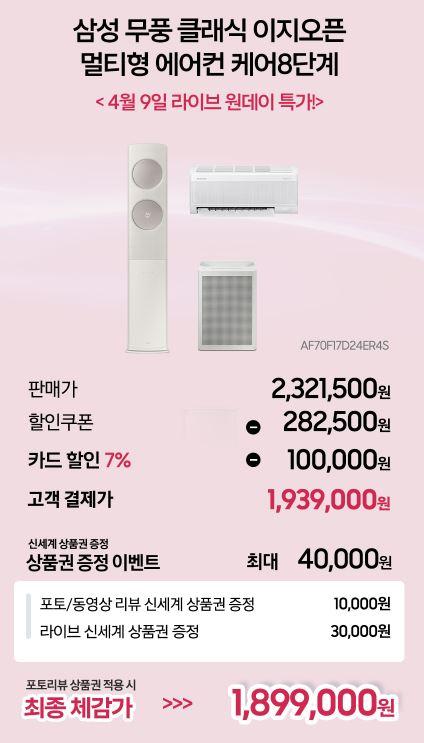카드 1,939,000원 나오고 상품권이랑 4만 받으면 체감가 189만원대 나오네요