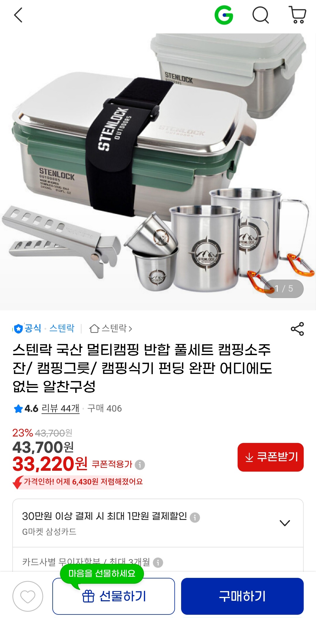 [지마켓] 스텐락 국산 멀티캠핑 반합 풀세트 (33,220원 / 무료배송) > 국내핫딜