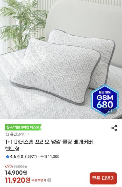 [지마켓] 1+1 마더스홈 프리오 냉감 쿨링 베개커버 밴드형 (11,920원/무료) > 국내핫딜