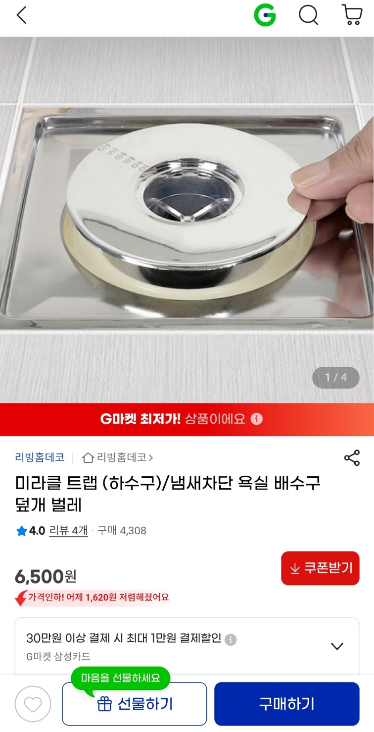 [지마켓] 냄새차단 욕실 배수구덮개 6,500원 > 국내핫딜