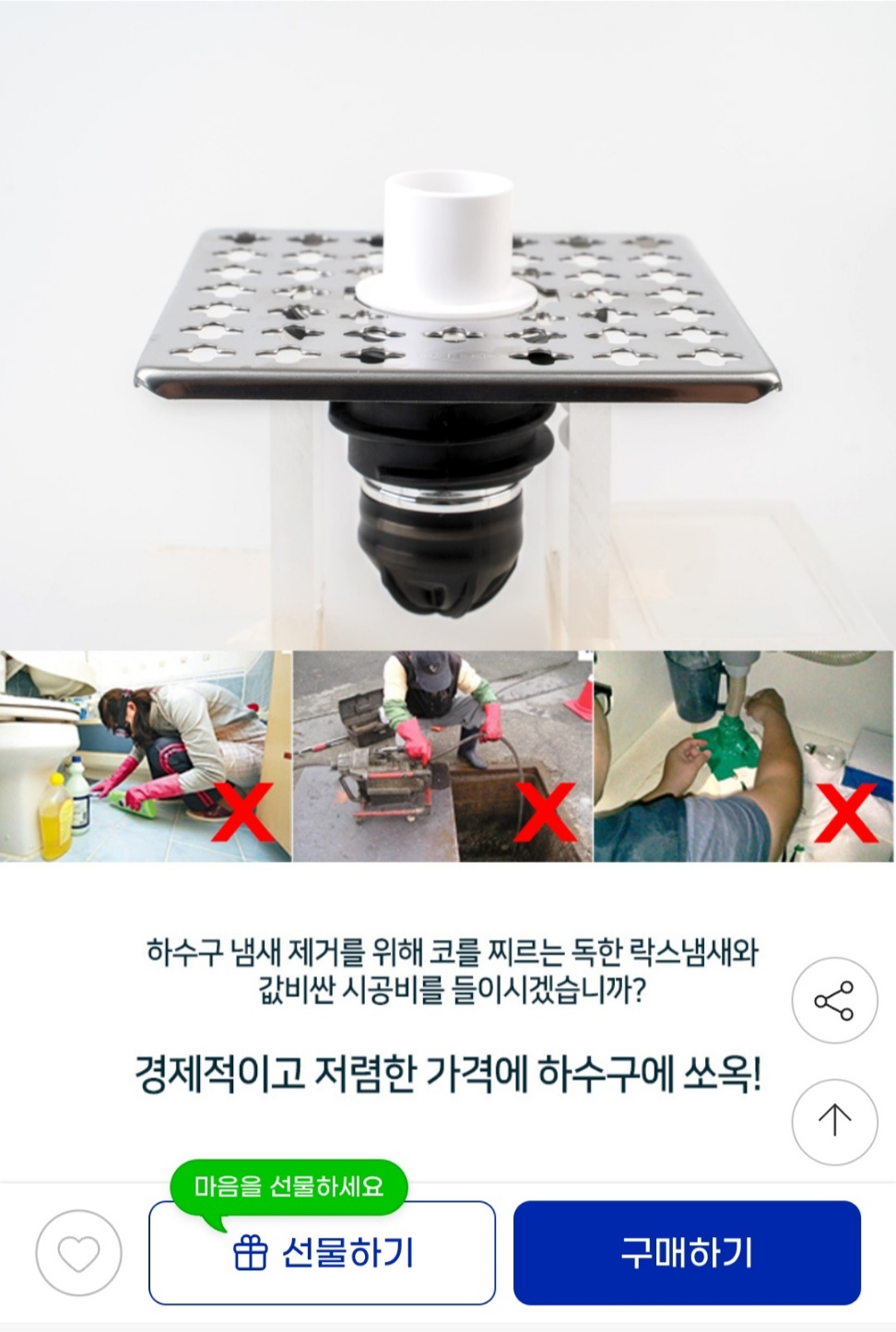 물은 내려가고 냄새, 벌레는 차단 시켜줘서 좋습니다.