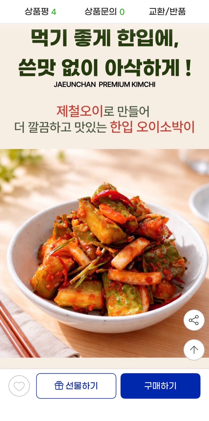 [지마켓] 먹기편한 한입 오이소박이 5kg (34,720원/무배)