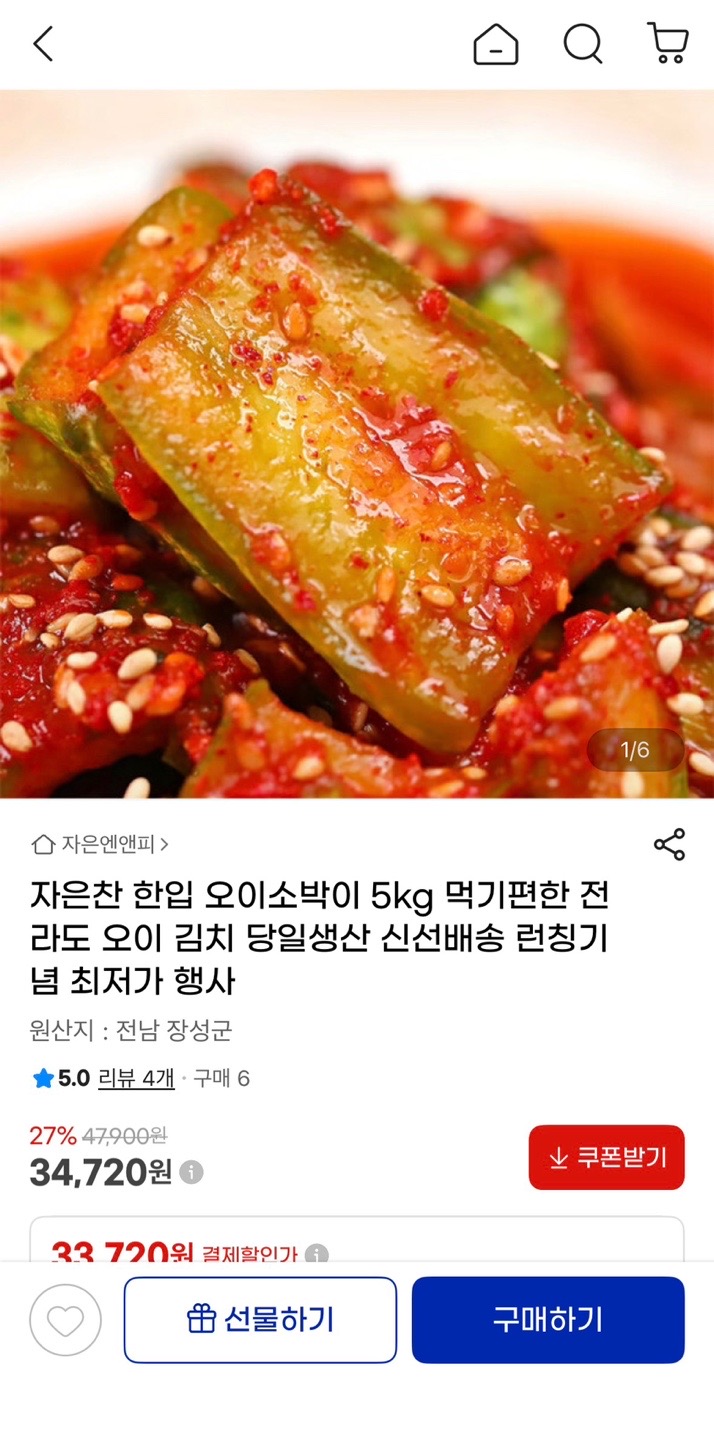 [지마켓] 먹기편한 한입 오이소박이 5kg (34,720원/무배) > 국내핫딜