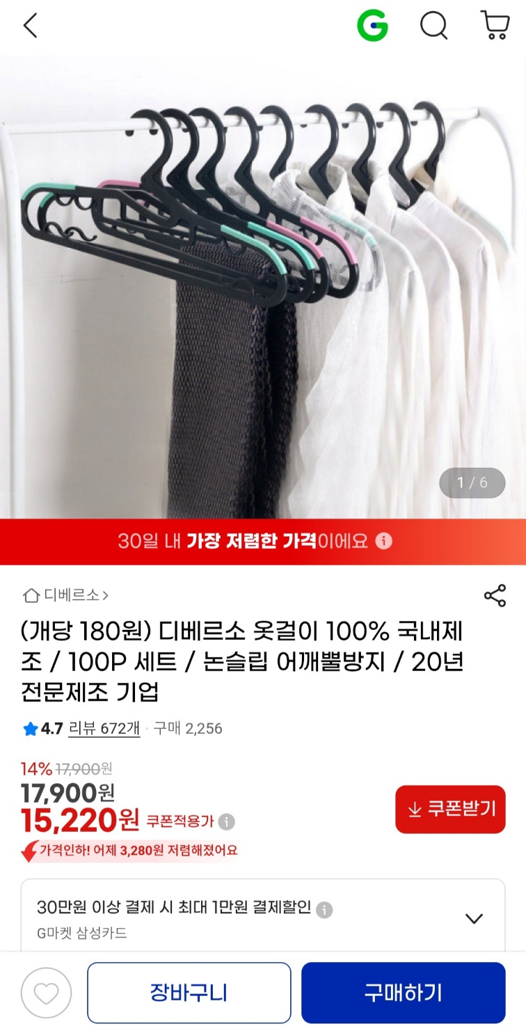 [지마켓] 가성비 좋은 논슬립 어깨뿔방지 옷걸이 100P 세트 (15,220원 / 무료배송) > 국내핫딜