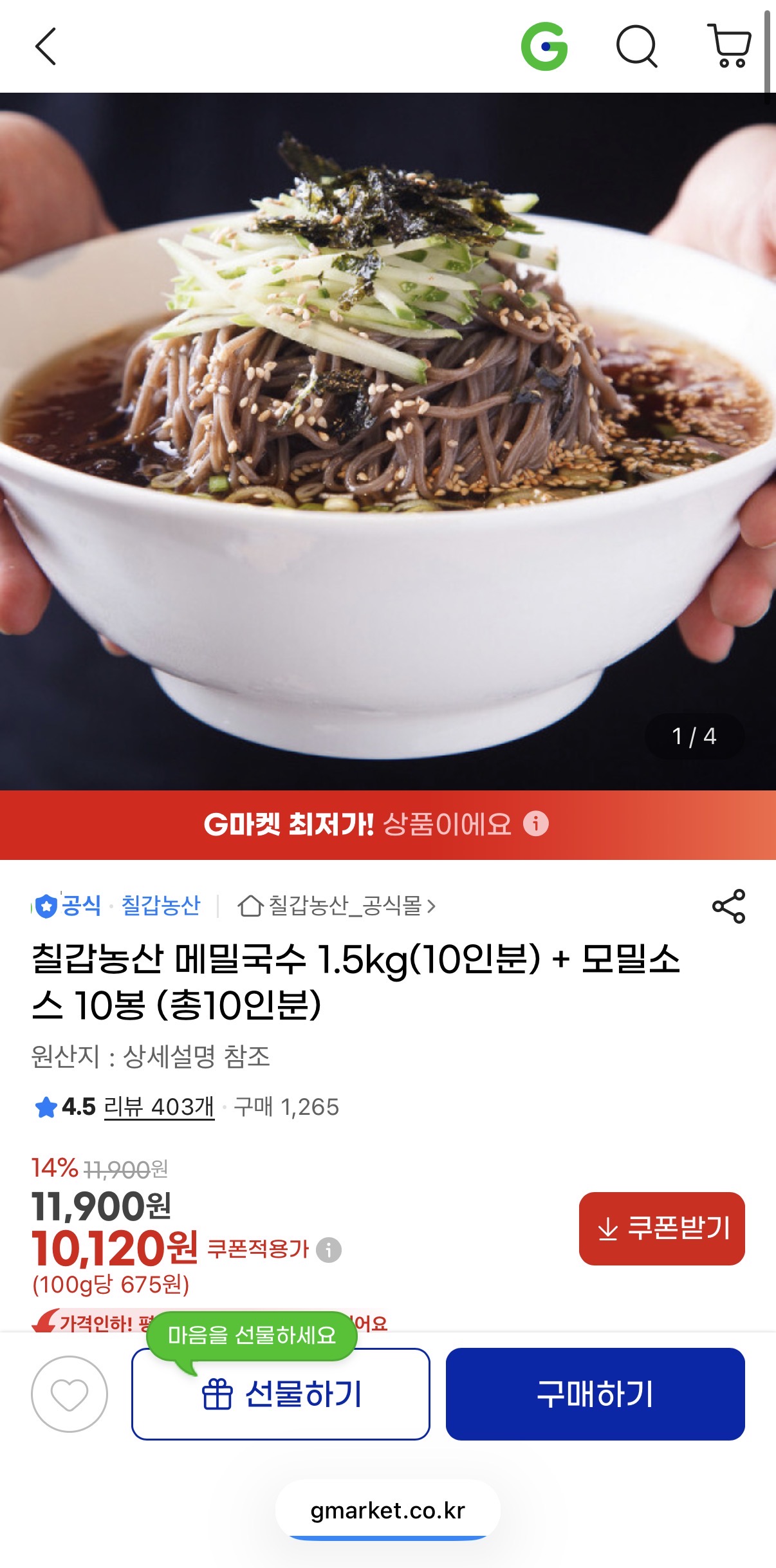 여름마다 칠갑농산 메밀은 무조건 쟁여두고 먹는데 마침 특가 떴네요. 10인분에 소스까지 다 포함해서 만 원 초반대면 가성비 진짜 미친 수준이네요