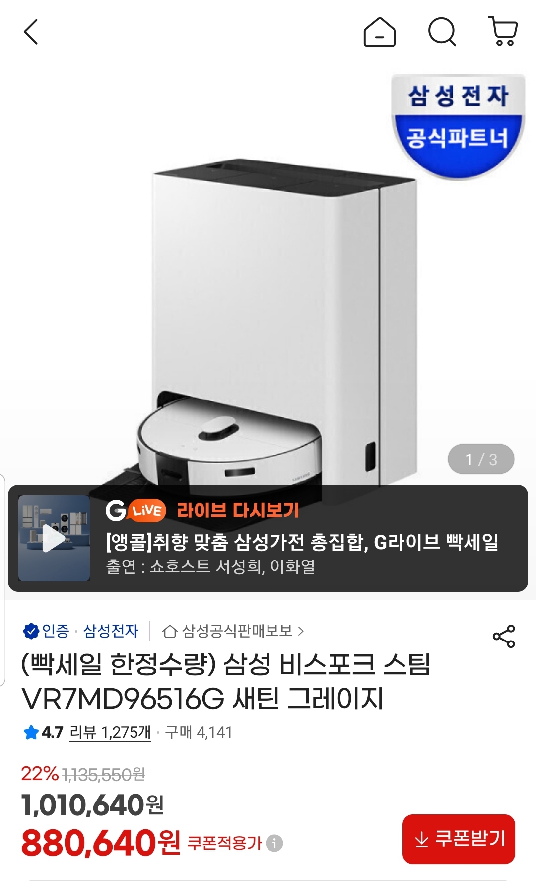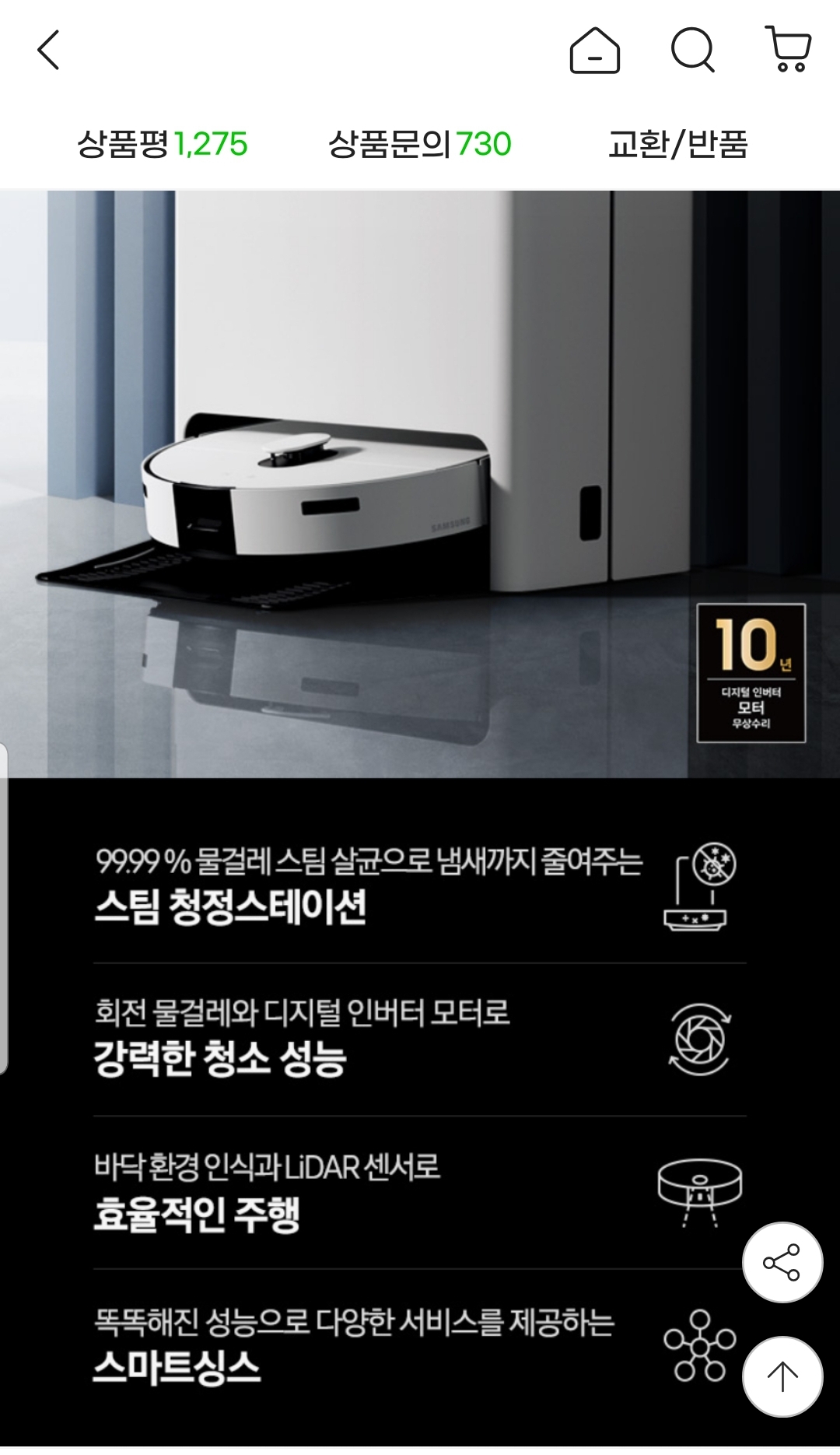 삼성답게 a/s도 쉽고 기사님이 설치도 해주시고 이름값도 있으니 청소 힘드실 부모님 선물로도 좋아보이네요