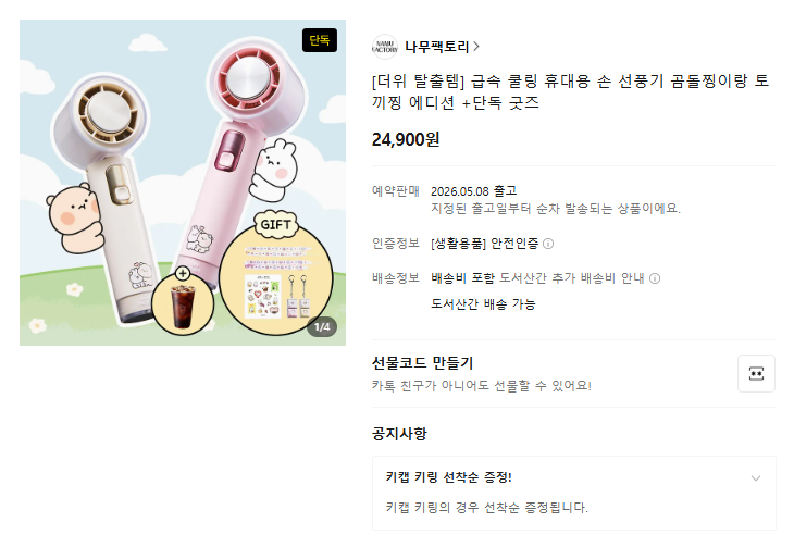 나무팩토리랑 곰돌찡 토끼찡 캐릭터 콜라보 제품이라 디자인 귀엽게 잘 나왔네요.