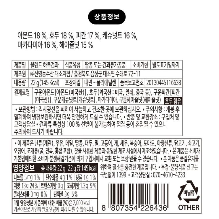 [지마켓] 블렌드 하루견과 22gx50봉 (34,940원/무료) > 국내핫딜