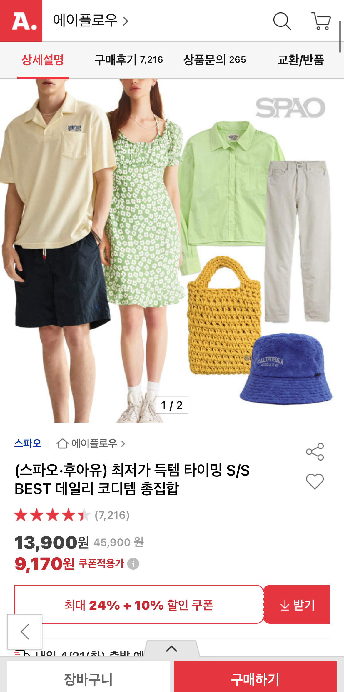 [옥션] 스파오 후아유 S/S Best 모음 (다양/무료) > 국내핫딜