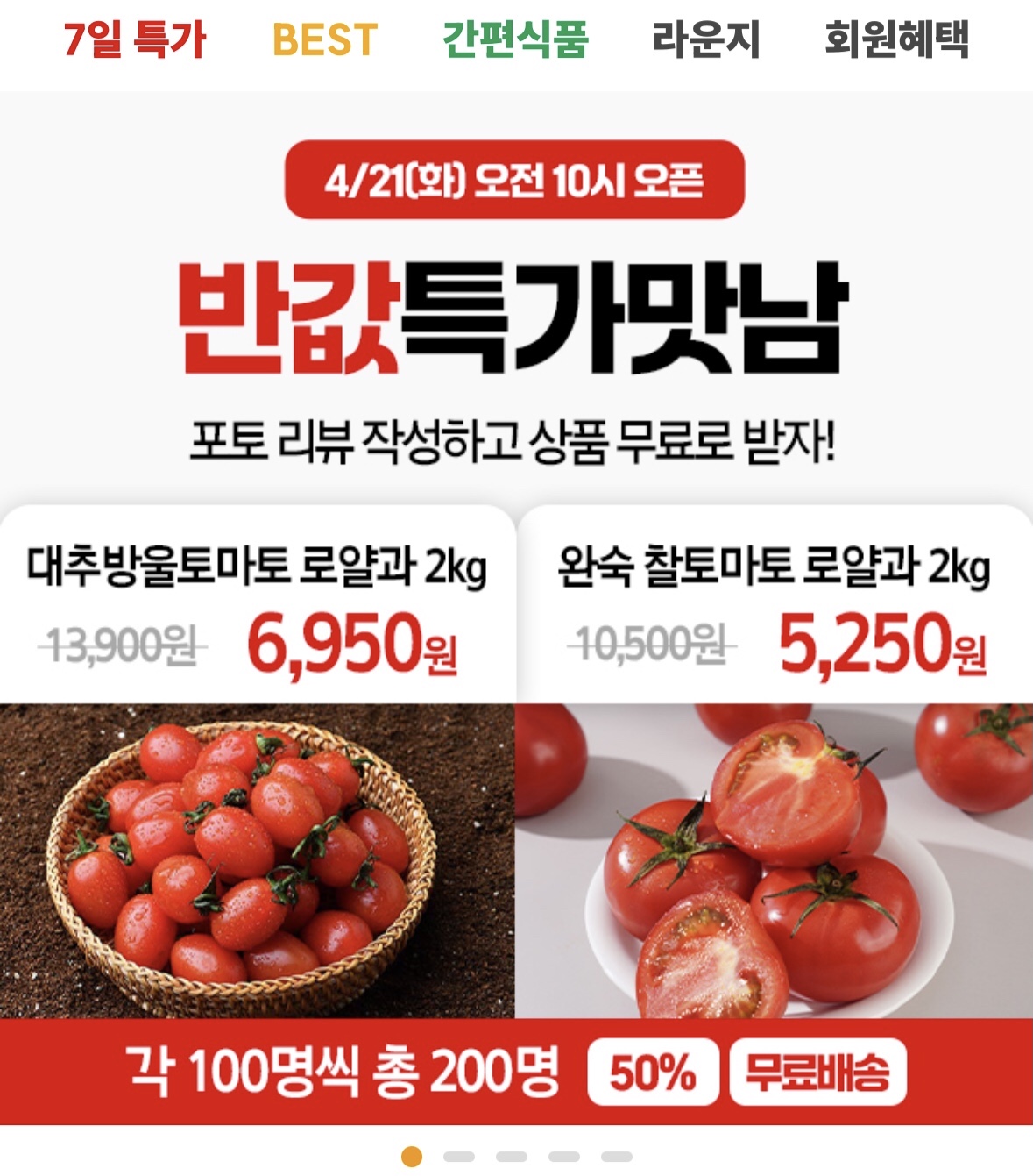 [네이버] 대추방울토마토, 완숙 찰 토마토 (5,250원~/무료) > 국내핫딜