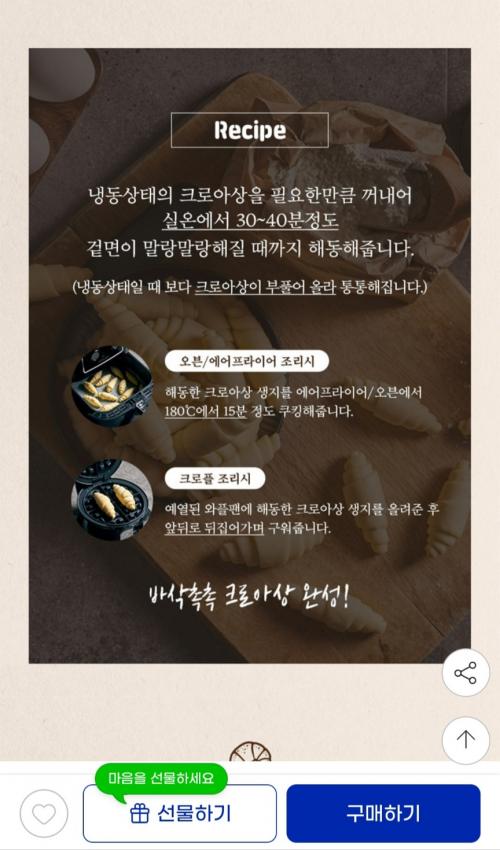 에어프라이어로 돌려먹기 좋은 냉동 크로아상 생지입니다.