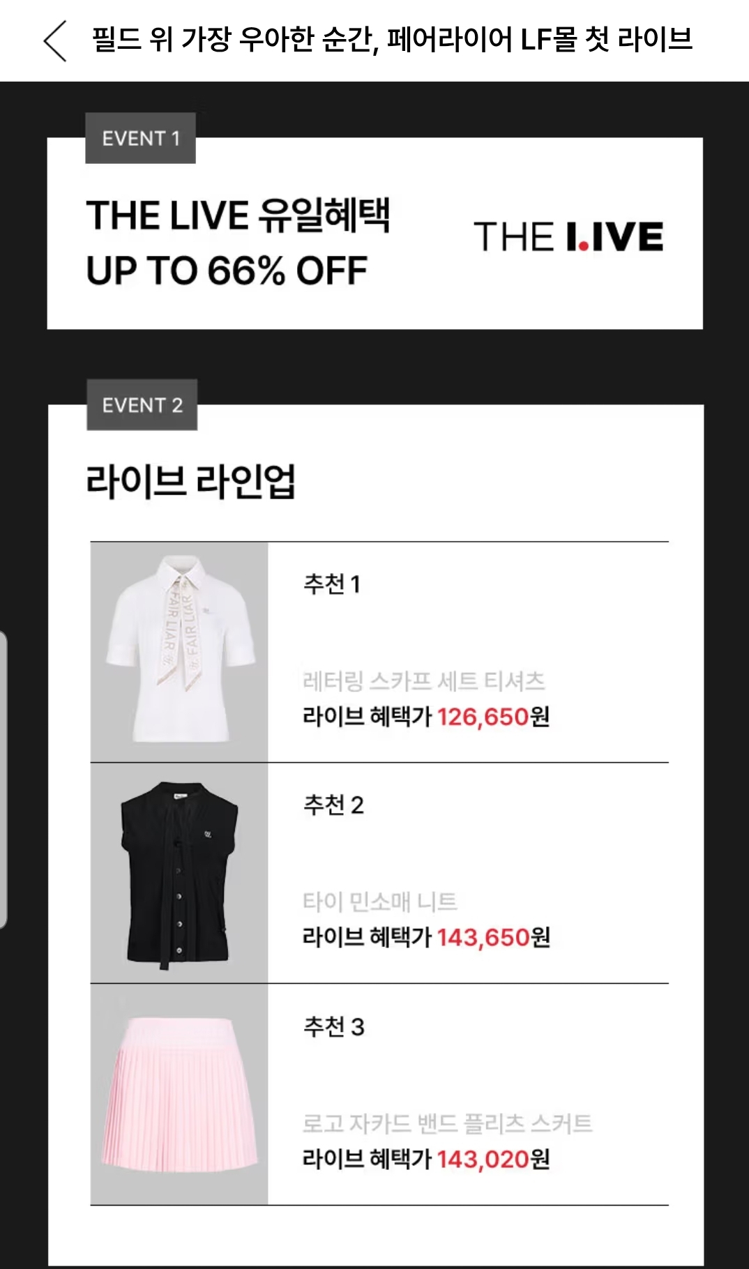 골프룩 페어라이어 최대 66퍼까지 라이브 방송