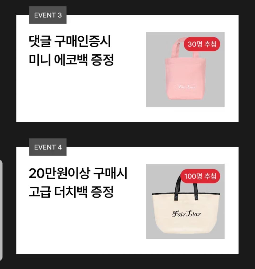 구매인증시 미니에코백증정 및 20만원이상 구매시 더치백 증정 있어서 조공용으로 구매하셔도 좋을듯하네요