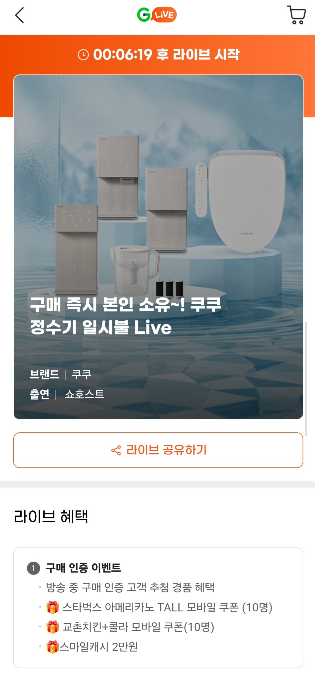 라이브동안 구매인증 이벤트로 교촌, 스벅 등 경품 다양하고