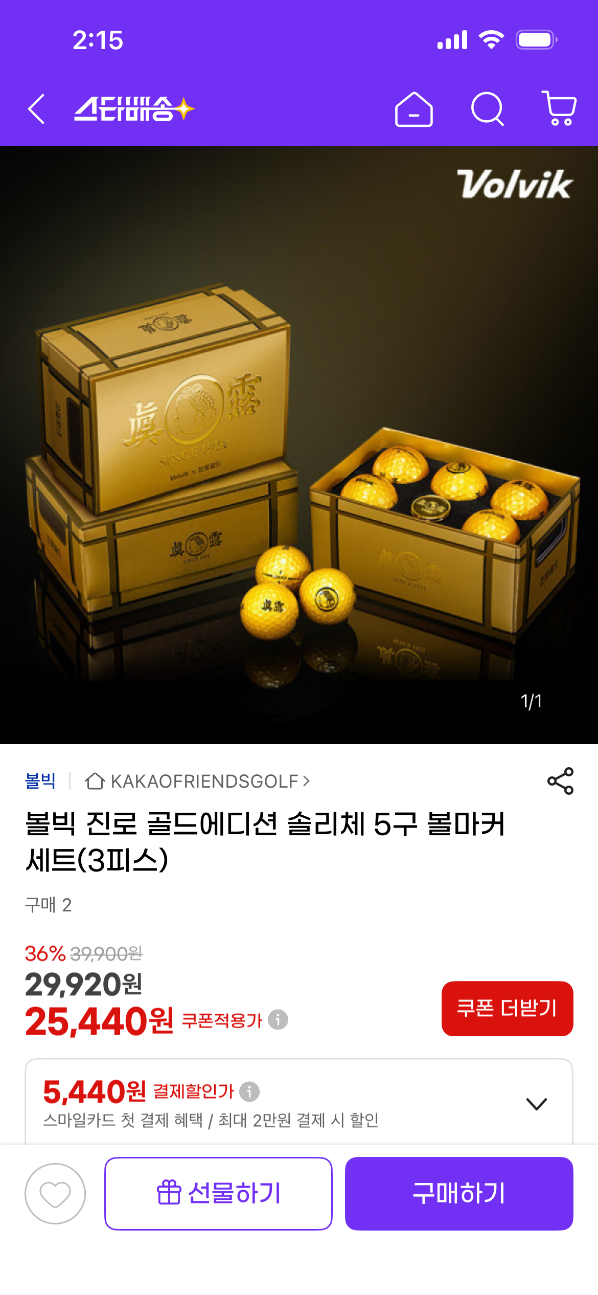 [지마켓] 볼빅 진로 골드에디션 솔리체 5구 볼마커 세트(25,440원 /3,200원)