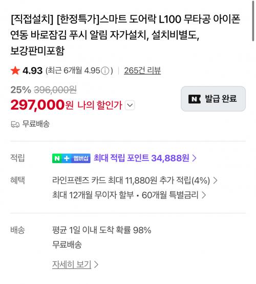 [네이버] 아카라 스마트 도어락L100 무타공 (297,000원/무배) > 국내핫딜