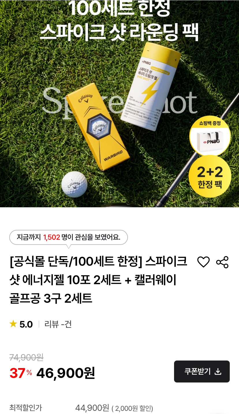 [PNBG] 스파이크샷 에너지젤 10포 2세트+캘러웨이 골프공 3구 2세트 (44,900원/무료) > 국내핫딜
