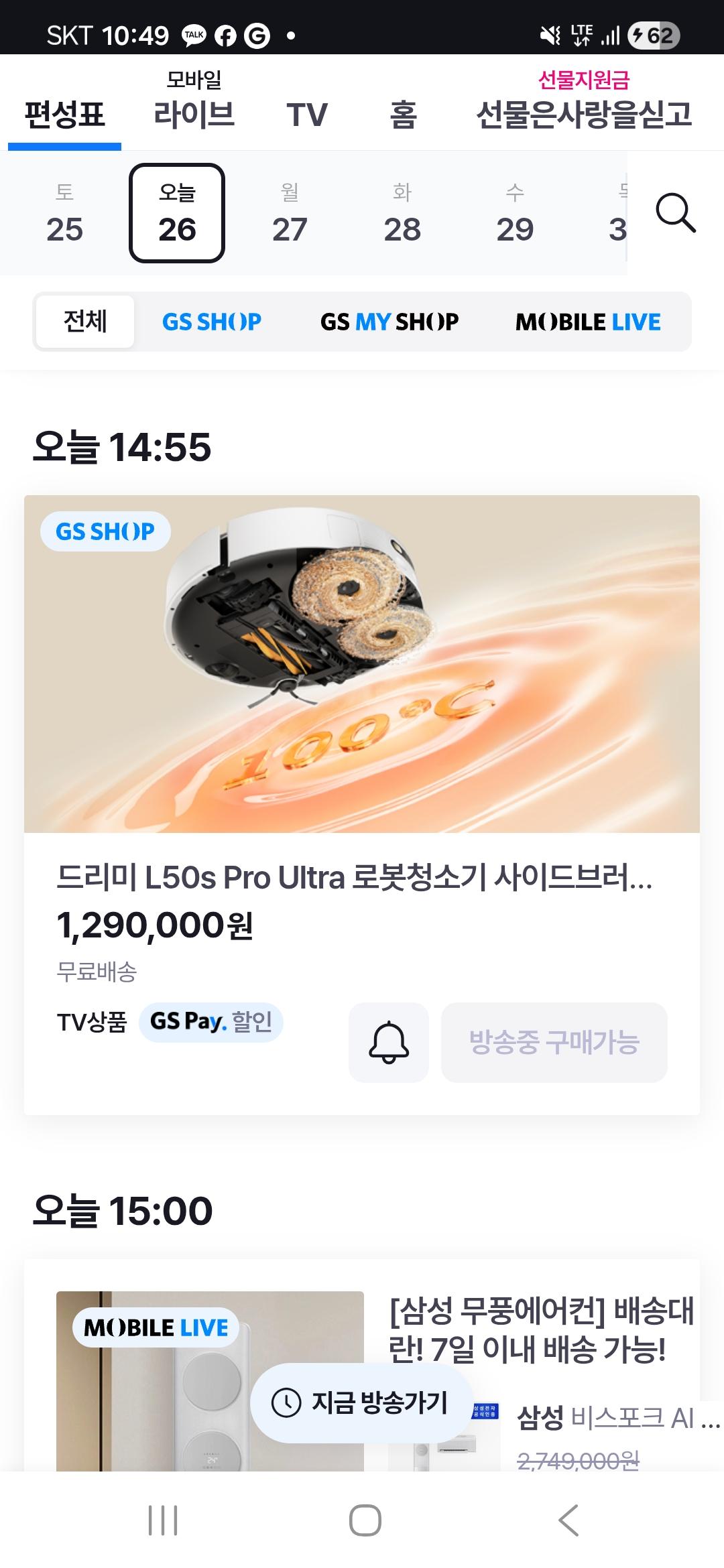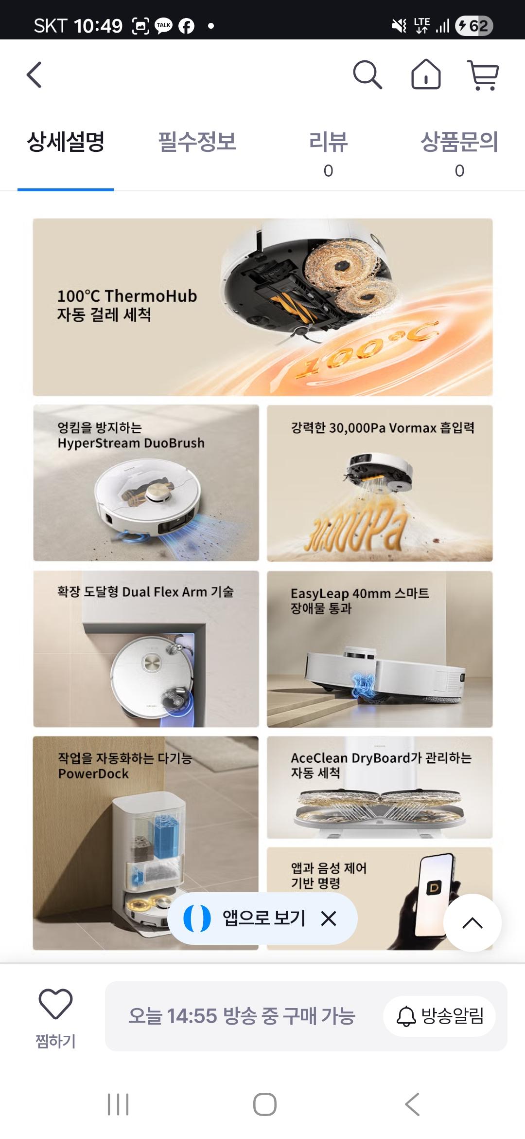 2시 55분부터 시작이니 로봇청소기 알아보시면 한번 확인해보세요..