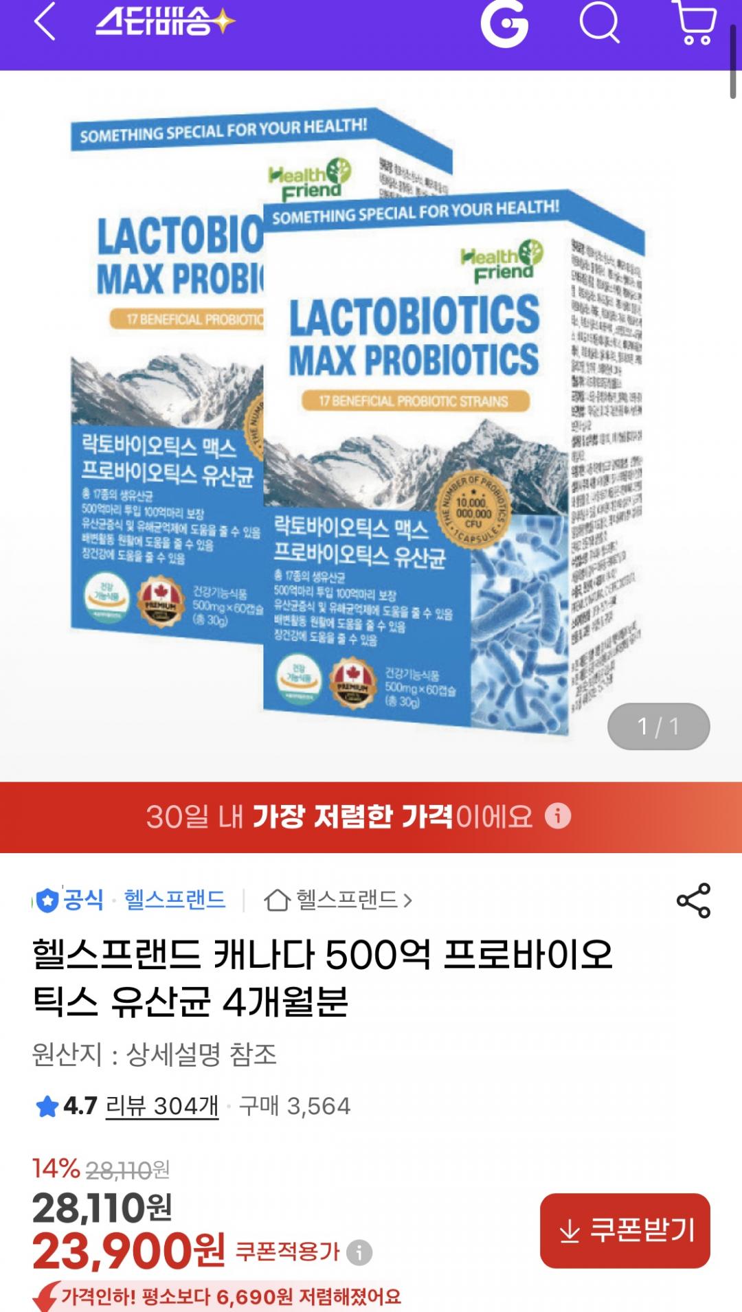 [지마켓] 캐나다 500억 프로바이오틱스 유산균 4개월분 (23,900원/무배) > 국내핫딜