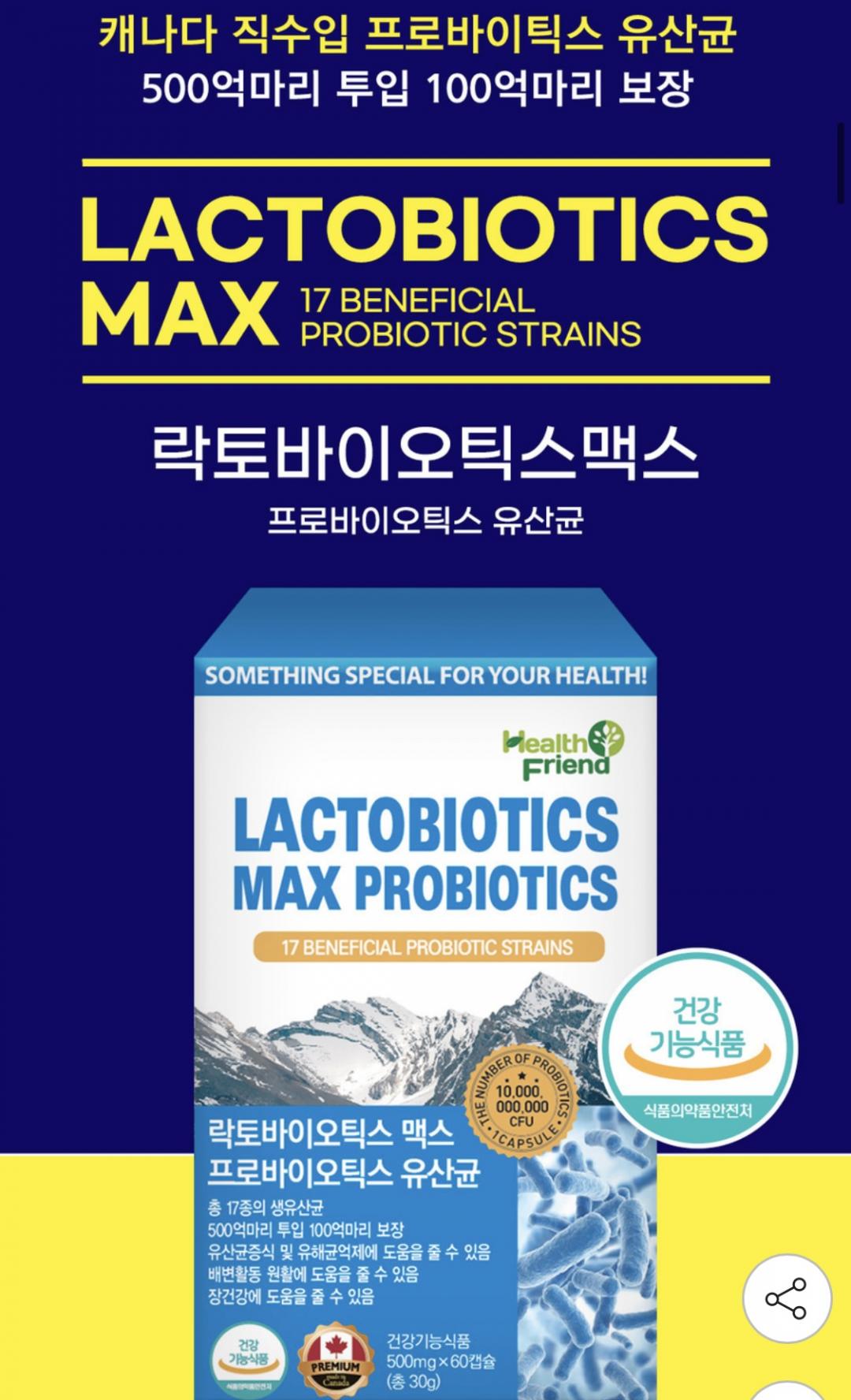 [지마켓] 캐나다 500억 프로바이오틱스 유산균 4개월분 (23,900원/무배)