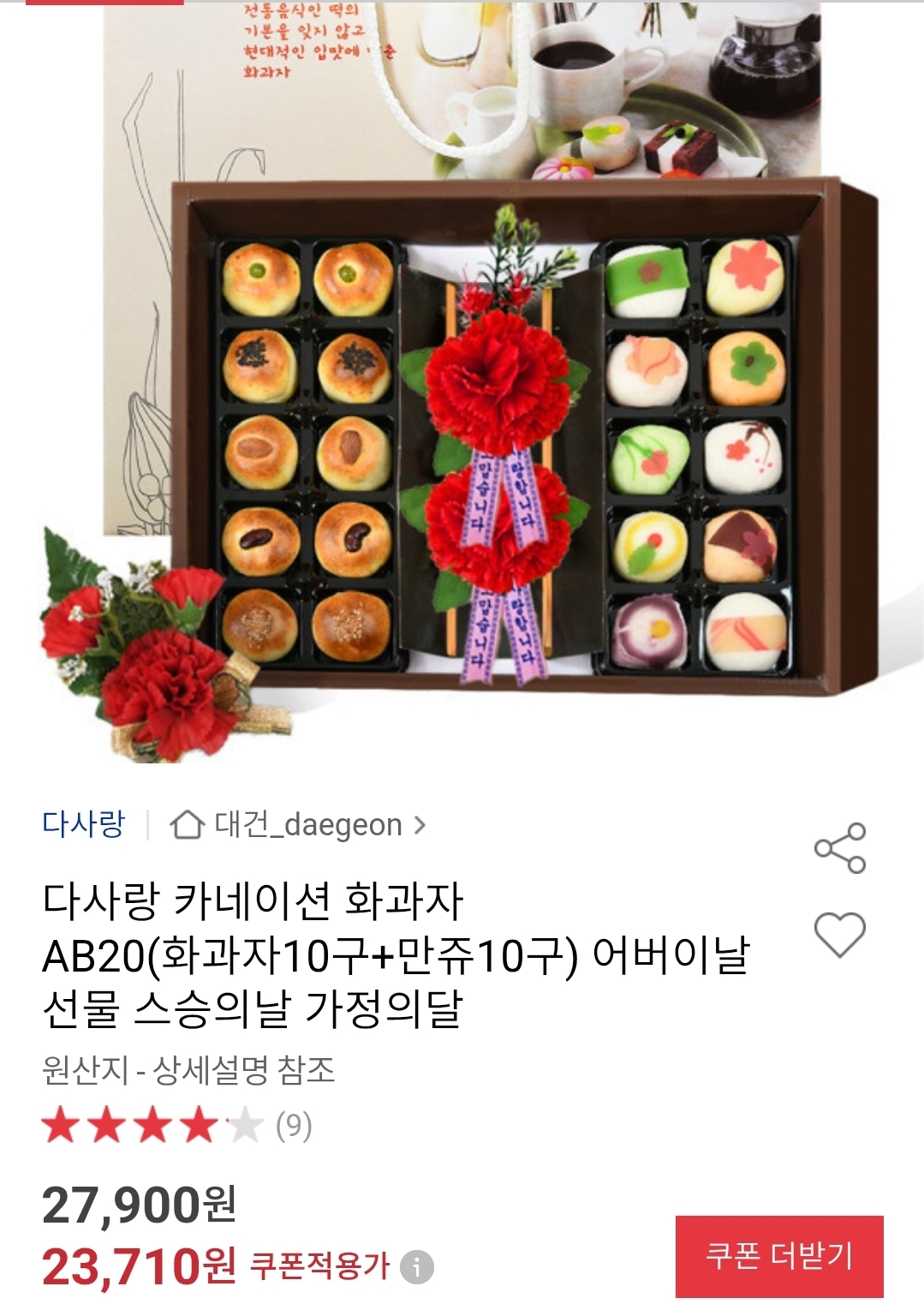 [옥션]카네이션 화과자 (화과자10구+만쥬10구) (23,710원/무배)