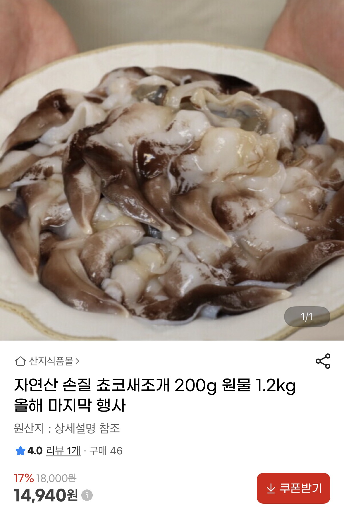 [지마켓] 당일조업 쵸코새조개 200g (14,940원/무배) > 국내핫딜
