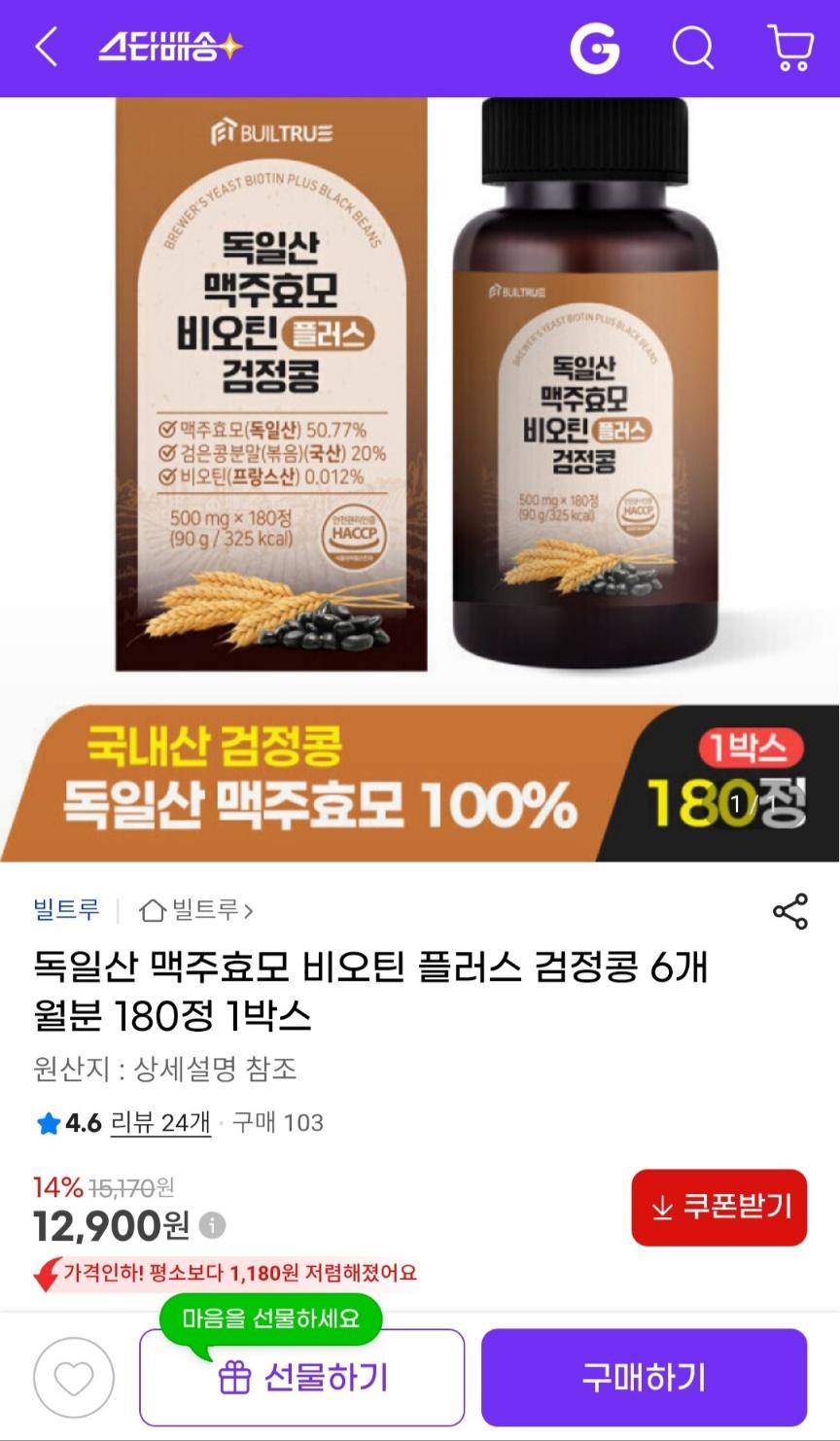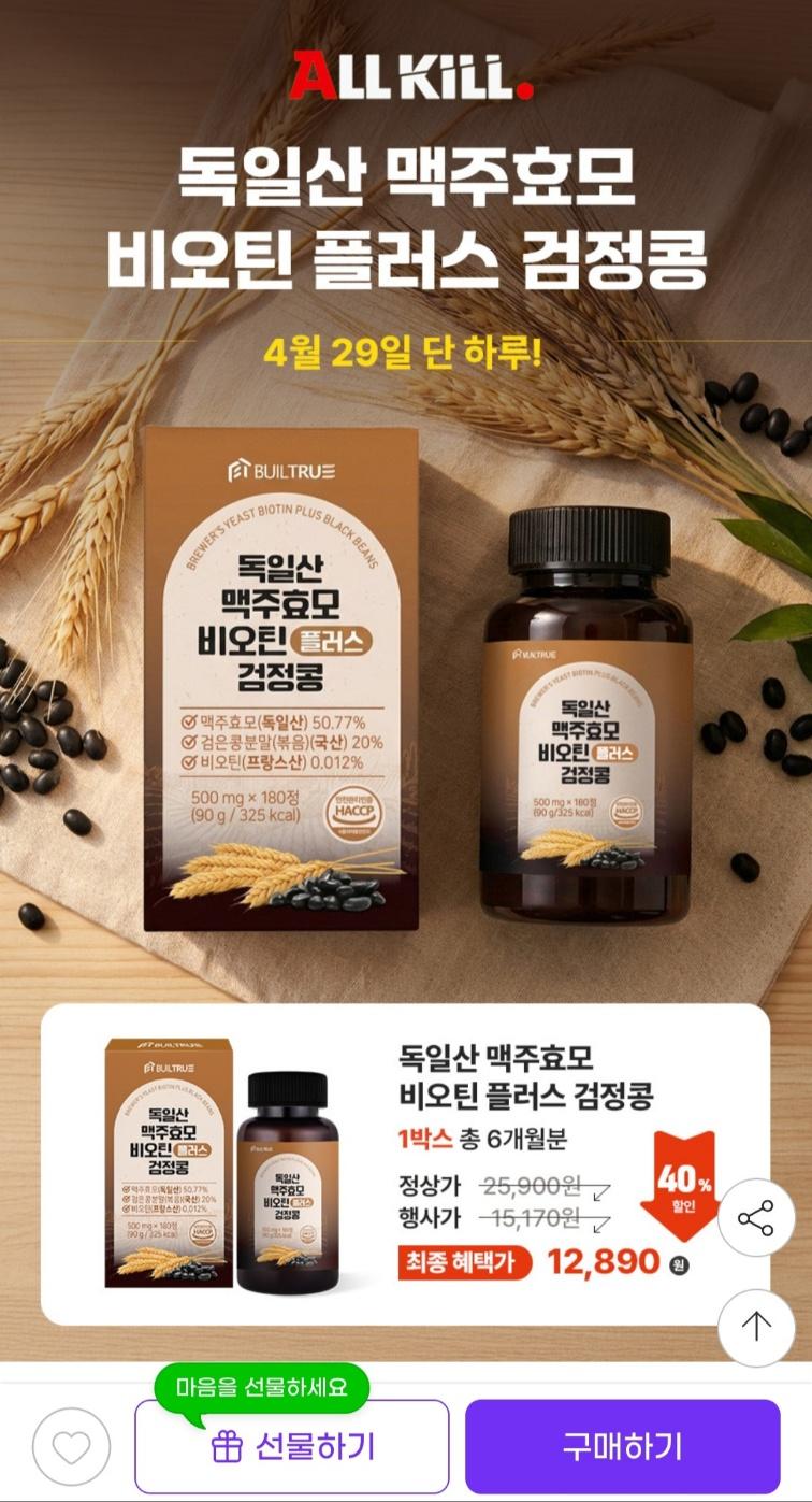 [지마켓] 독일산 맥주효모 비오틴 플러스 검정콩 6개월분 (12,900원 / 무료배송)