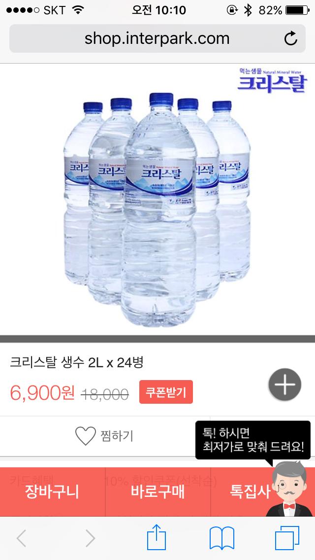 [인터파크] 크리스탈생수 2L x 24 (6,900/무료) > 국내핫딜