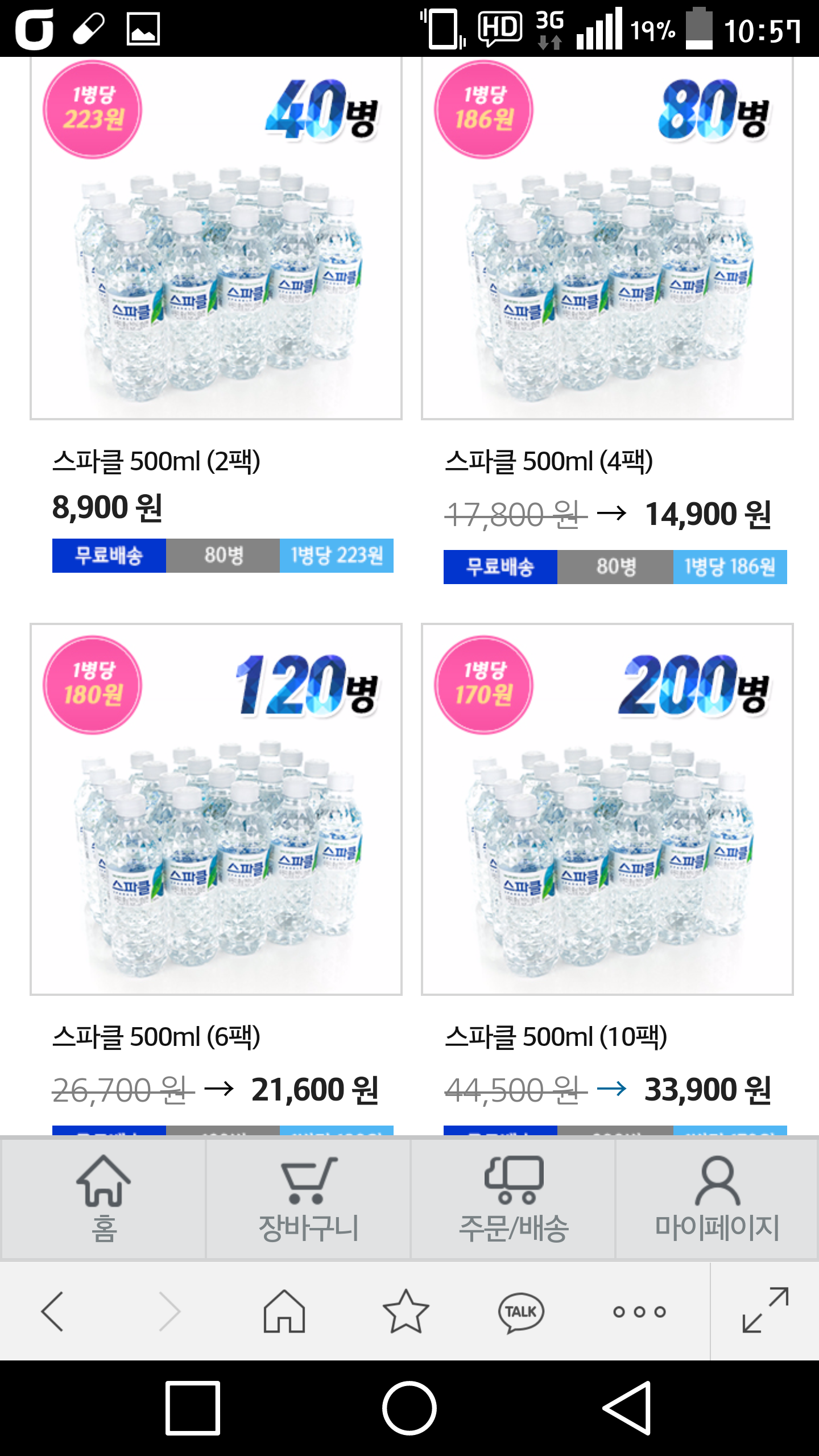 스파클 생수 배달 트럭으로 오기 때문에 많이 주문해도 미안하지 않죠