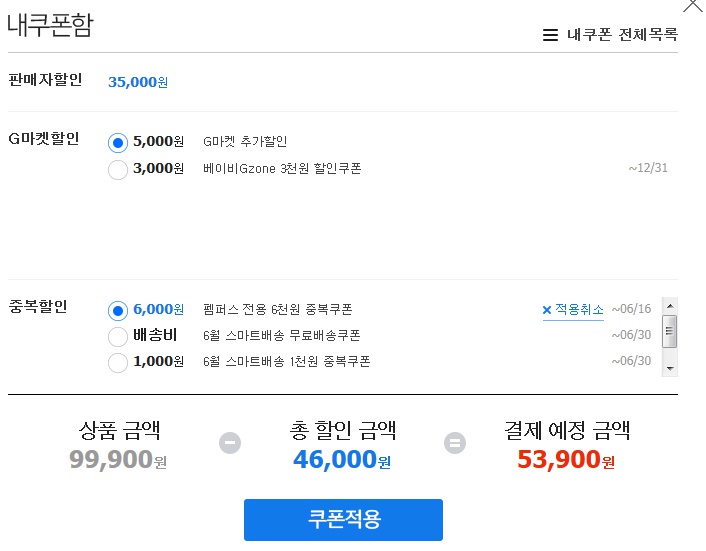 http://promotion.gmarket.co.kr/planview/plan.asp?sid=145080 여기로 들어가셔서 팸퍼스 전용 6천원 쿠폰 받으시고