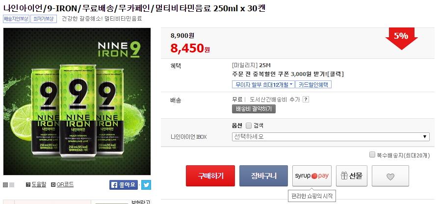 [11번가] 무카페인 비타민 음료 나인아이언 30캔 (8,450/무료/네이버경유) > 국내핫딜