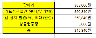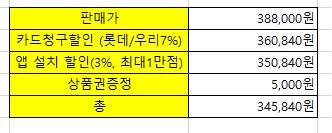 총 다 합해서 345,840원에 구입 가능합니다