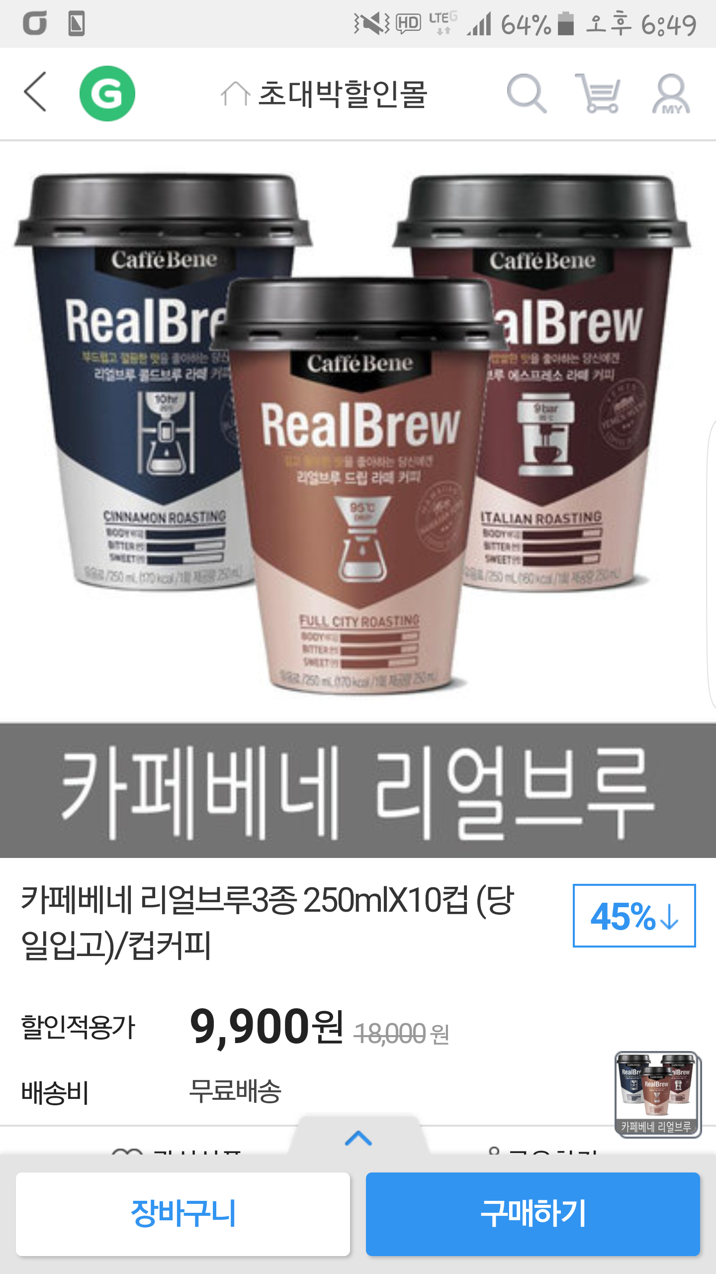 [G마켓] 카페베네 리얼브루3종 250mlX10컵 (당일입고)/컵커피 (9,900/배송비) > 국내핫딜