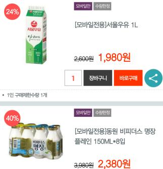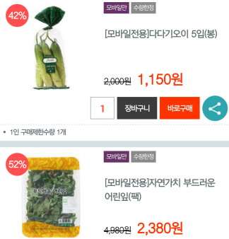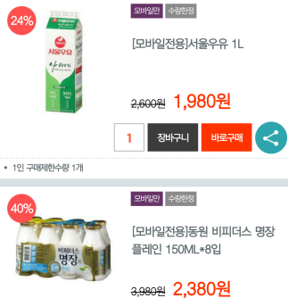 비할인 상품이나 할인폭이 10프로 정도로 낮은 상품들은..