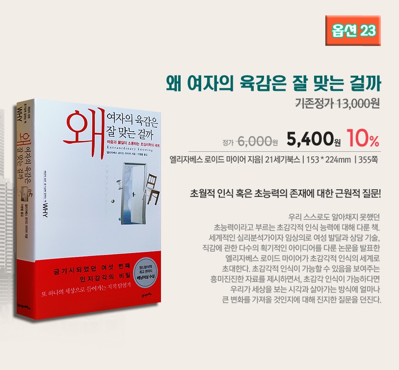 [G9] 왜 여자의 육감은 잘 맞는걸까 등 다양 (5,400 / 3권이상 무료) > 국내핫딜