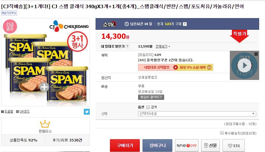 짜고 맛있는스팸,,, 살은옵션,, 덕분에 올여름 행복합니다. |