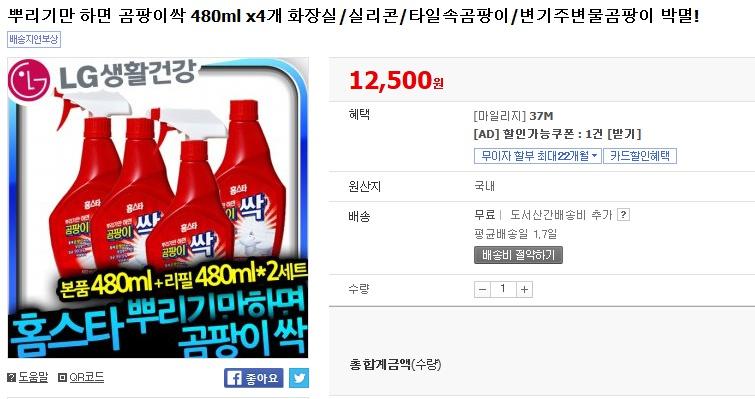 집에 곰팡이 제거제가 떨어져서 사려고 이곳저곳 보다가 11번가를 택했습니다.