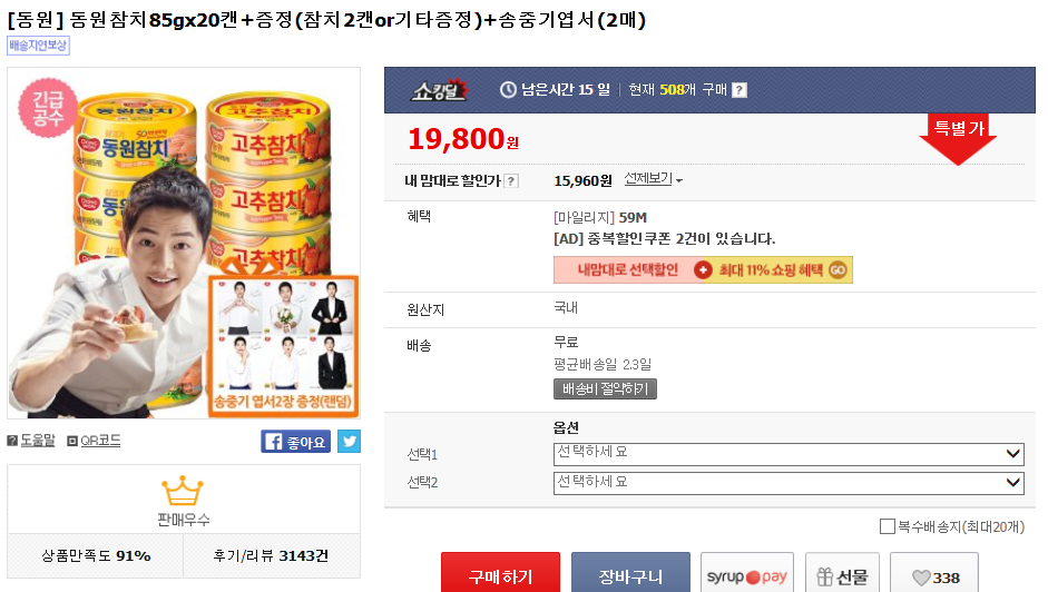 덕분에 잘사고 갑니다 1인가구이지만 통조림이니까 쌓아둬야겠어요 |