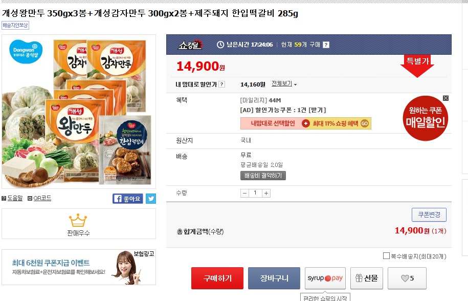 개성왕만두 1.7 + 감자만두 1.7 조합이 가장 좋은데 애매하네요. 소분되어 있어서. |