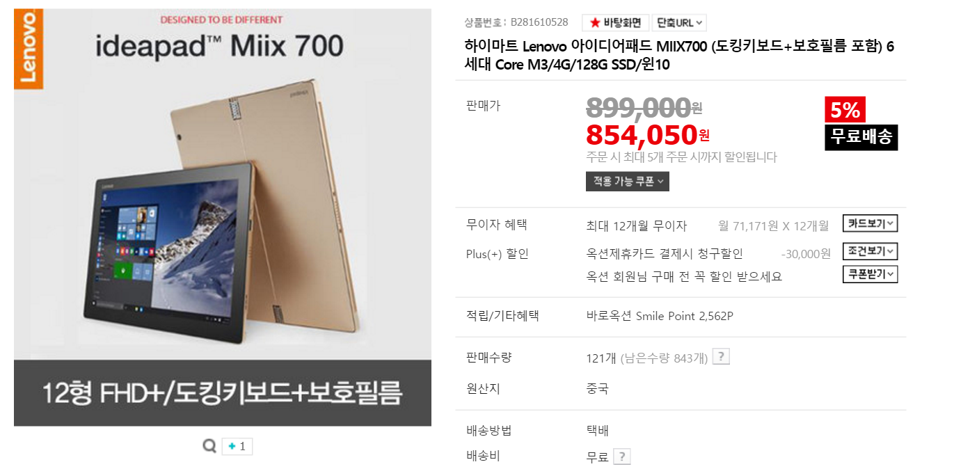 윈도우태블릿 레노버 믹스 700이 가격이 살짝 떨어져있네요