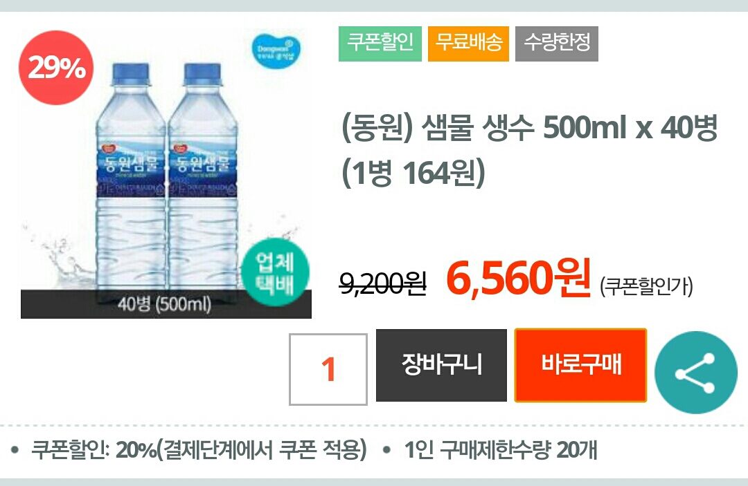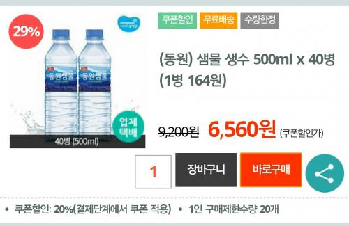 [GSi슈퍼앱] 동원 500ml*40병(6560원/무배송비) > 국내핫딜