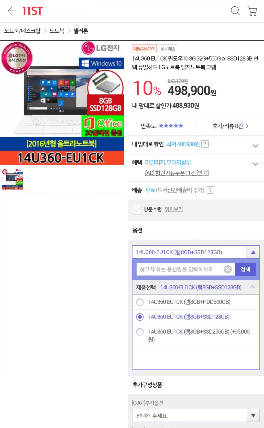 이건 그 때에 비해 램을 무려 8기가로 올려주고(원래 2기가) SSD 128을 달아줍니다