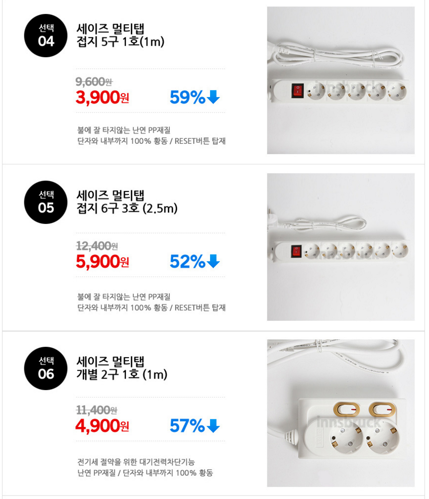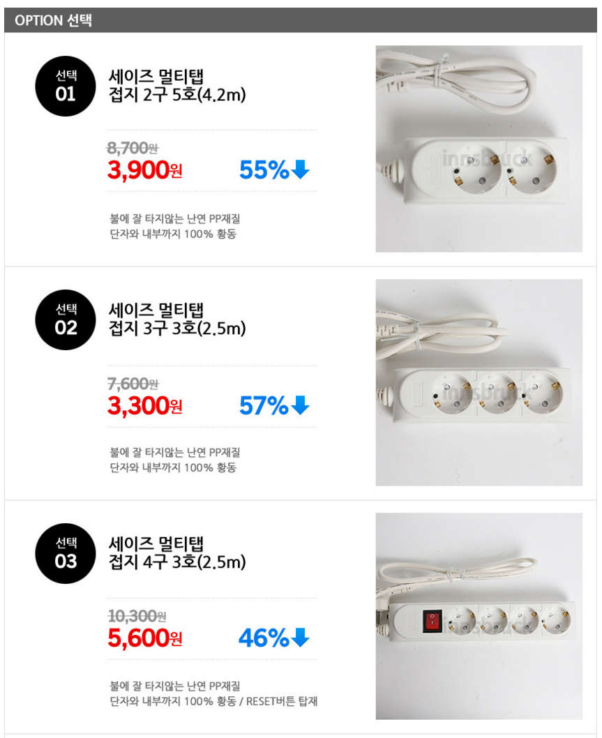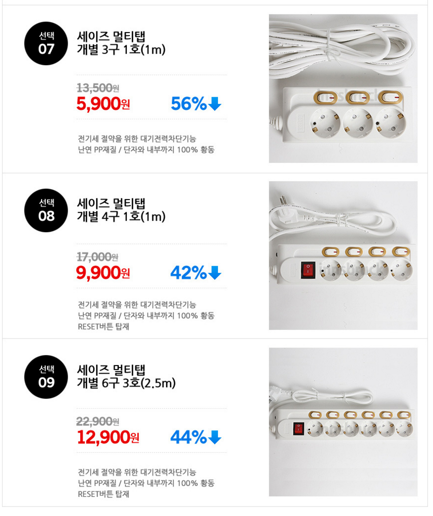 [옥션] 독일수출 세이즈 멀티탭 모음특가 (3,900원~/2,500원) > 국내핫딜