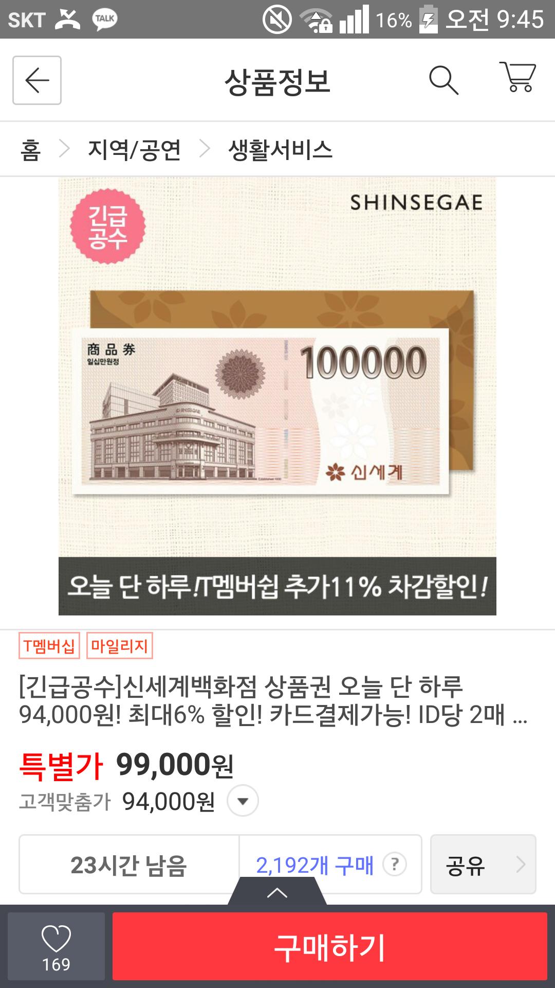 백화점에는 대부분 스크래치형 종이상품권이 있어서... 괜찮은 딜입니다.