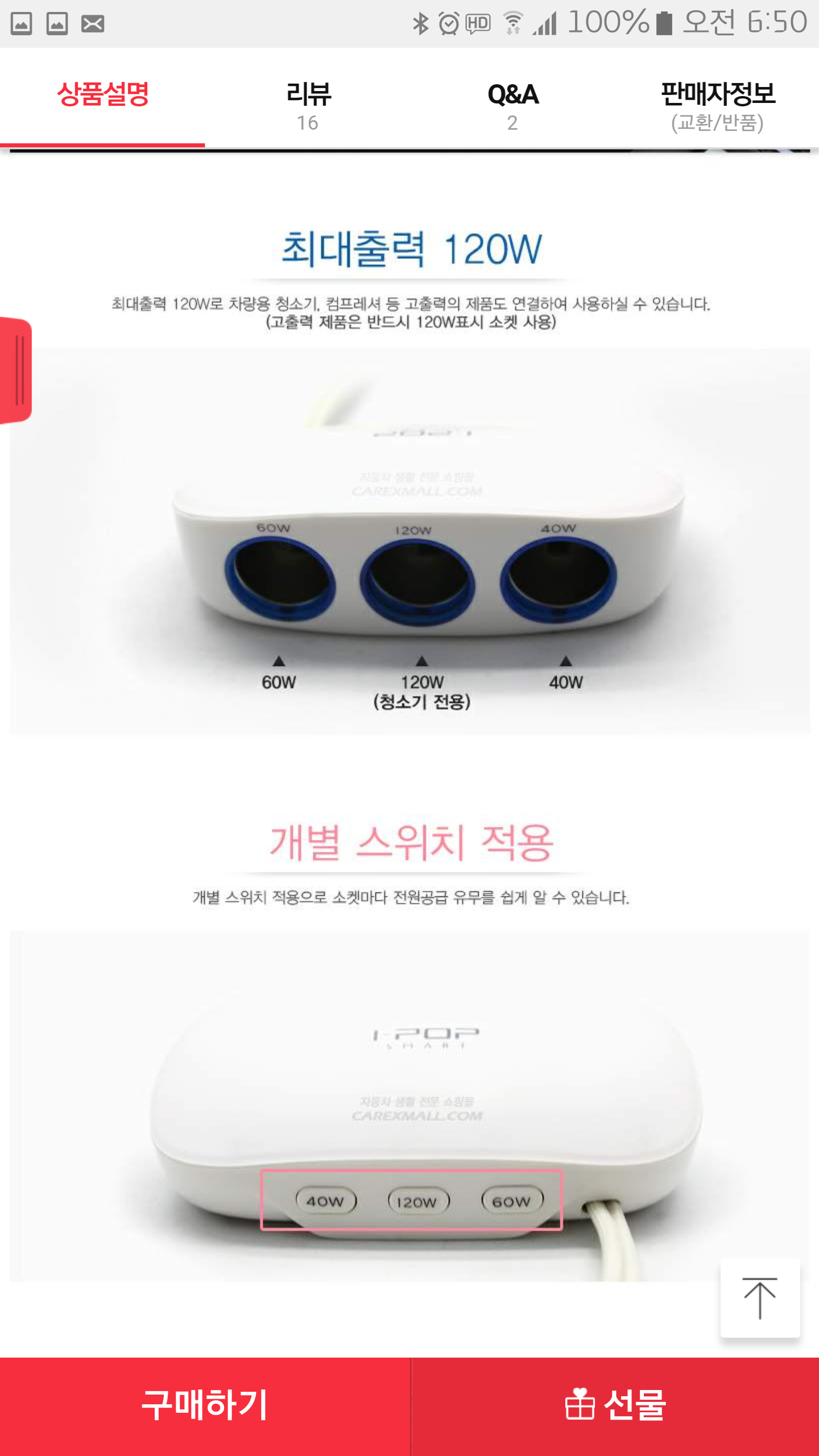 장점은 폰충전기가 따로 필요없고요 2.4 A 급속충전이 가능하고요 120W 고출력 단자가 있고 개별스위치가 있는점 휴즈때문에 안전성