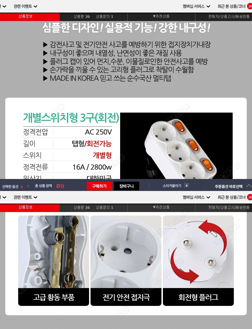 3구 회전 개별절전이 가능한 멀티탭입니다