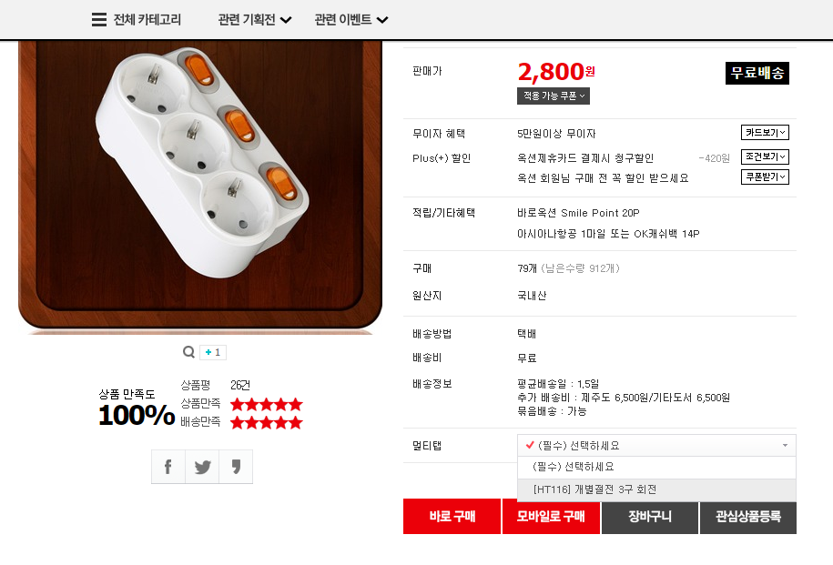 그리고 1구짜리랑 2구짜리 무료배송도 있습니다.