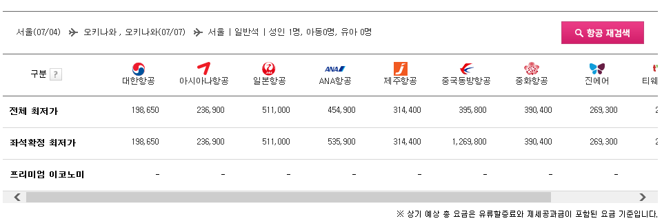 저가항공만큼 저렴하길 기대하긴 어렵죠.. |